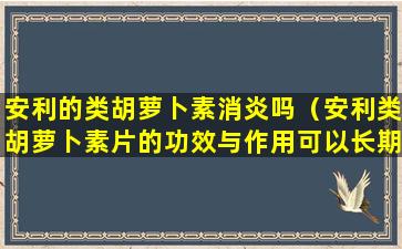 关于是否可以长期服用安利类胡萝卜素片,这取决于个人的健康状况和营养需求。一般来说,适量摄入类胡萝卜素是安全的,但长期过量摄入可能会导致维生素A过量,这可能会引起头痛、恶心、皮肤干燥、关节疼痛等症状,严重时甚至可能导致肝脏损害。
