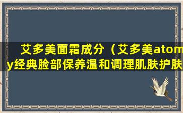 "艾多美"(Etude House)是一个韩国化妆品品牌,以其可爱的包装和多样化的产品线而受到年轻消费者的喜爱。关于“艾多美面霜成分”,由于艾多美生产多种面霜,每种面霜的成分可能会有所不同。通常,面霜的成分会包括保湿剂、乳化剂、防腐剂、香料、活性成分等。