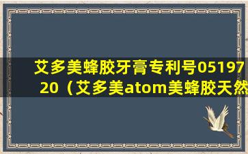 关于您提到的“艾多美蜂胶牙膏专利号0519720”,首先需要澄清的是,专利号通常由国家知识产权局或相应的国际组织分配,用于唯一标识一项专利。专利号通常包含国家代码、年份和序列号等信息。