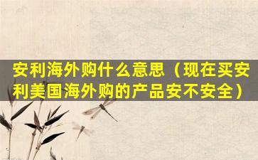 "安利海外购"通常是指通过安利(Amway)这个品牌进行海外购物的行为。安利是一家全球知名的直销公司,主要销售健康、美容和家居护理产品。"海外购"则是指消费者通过跨境电商平台或者直接从海外购买商品。