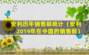截至我的知识更新日期(2023年),我无法提供2019年安利(Amway)在中国的具体销售额数据。安利是一家全球性的直销公司,其销售数据通常由公司自行公布,或者通过市场研究报告获得。如果您需要这些数据,建议直接查阅安利的官方公告或联系公司获取最新的财务报告,或者查看相关的市场研究报告。请注意,由于数据可能涉及商业敏感信息,获取这些信息可能需要符合一定的条件或支付相应的费用。