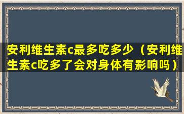 安利(Amway)是一家知名的直销公司,其产品包括维生素C补充剂。维生素C是一种水溶性维生素,对于人体的免疫系统、皮肤健康、以及抗氧化过程都有重要作用。任何营养素,包括维生素C,如果摄入过量都可能对身体产生不良影响。