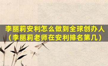 如果您提到的“李丽莉”是指安利公司的高层管理人员或重要人物,那么可能需要更具体的信息来确认其身份和角色。在安利的历史和公开资料中,并没有广泛提及名为“李丽莉”的创办人。如果您有更多关于此人物的信息,请提供详细内容,以便进行更准确的查询。