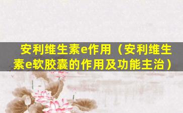 安利(Amway)是一家全球知名的直销公司,其产品线包括营养补充品、个人护理品和家居用品等。安利生产的维生素E产品通常被用作抗氧化剂,有助于保护身体细胞免受自由基的损害。