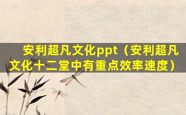 如果您提到的“安利超凡文化ppt”是指安利公司内部或外部培训、会议中使用的演示文稿,那么它可能包含以下内容: