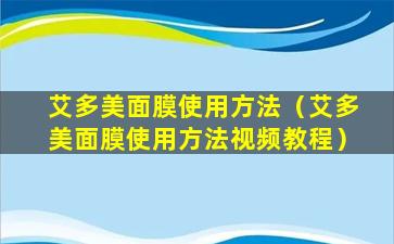 艾多美面膜使用方法(艾多美面膜使用方法视频教程)