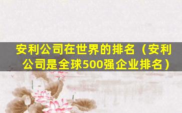 截至我所知的信息,安利(Amway)是一家总部位于美国的跨国直销公司,主要经营健康、美容和家居护理产品。安利并不是一家上市公司,因此它不会出现在《财富》或《福布斯》等杂志发布的全球500强企业排名中,这些排名通常是基于上市公司的财务数据。