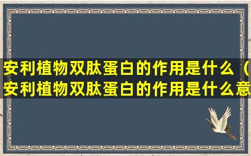 安利(Amway)是一家全球性的直销公司,其产品线涵盖营养补充品、个人护理品、家居用品等。在营养补充品中,安利可能会推出含有植物双肽蛋白的产品。这里的“植物双肽蛋白”可能是指从植物来源中提取的蛋白质,经过特殊处理形成的双肽(即两个氨基酸通过肽键连接的分子)。
