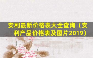 很抱歉,我无法提供具体的“安利产品价格表及图片2019”,因为我的知识截止日期是2023年,而且我无法访问互联网以获取最新的价格信息或图片。不过,我可以提供一些关于安利公司及其产品的基本信息。