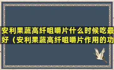 安利果蔬高纤咀嚼片是一种补充膳食纤维的产品,它可以帮助促进肠道健康,增加饱腹感,并有助于维持正常的消化系统功能。关于何时食用这种咀嚼片,以下是一些建议: