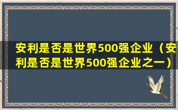 《财富》世界500强是根据公司的年度营业收入来排名的,而安利的收入规模通常不足以使其进入这个榜单。因此,可以说安利不是世界500强企业。这并不意味着安利不是一个成功的企业,它在直销行业中有着显著的地位和影响力。