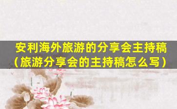 欢迎大家莅临本次“安利海外旅游分享会”。我是今天的主持人[主持人姓名],非常荣幸能与大家共同分享这次精彩的旅程。