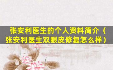 张安利医生在双眼皮修复方面的技术和经验,我无法提供具体的信息,因为我的知识库中没有关于这位医生的详细资料。如果您想了解张安利医生的双眼皮修复技术,建议您可以通过以下几种方式获取信息: