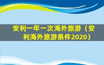 截至我的知识更新日期(2023年),关于“安利海外旅游条件2020”的具体信息,我无法提供最新的数据。但是,我可以提供一些一般性的信息,关于在2020年全球疫情期间,海外旅游可能面临的一些条件和限制。