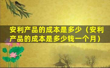 如果您是作为消费者购买安利产品,成本将取决于您购买的产品种类和数量。例如,如果您购买的是营养补充品,可能每个月的成本在几百元人民币;如果是个人护理产品,成本可能更低。