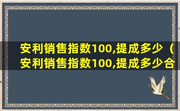 在安利的奖励制度中,销售指数100通常指的是个人或团队在一定时间内达到的销售业绩。提成的计算通常会涉及到多个因素,包括但不限于: