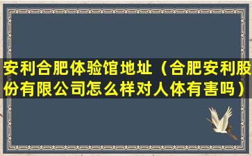 截至我的知识更新日期(2023年),安利(Amway)是一家全球知名的直销公司,其产品包括营养补充品、个人护理品、家居清洁用品等。在中国,安利也有广泛的业务分布,包括在合肥这样的城市。