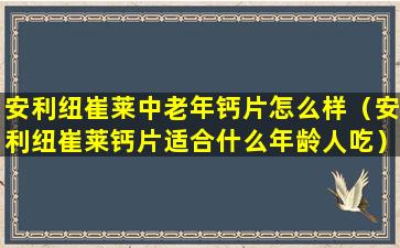 安利纽崔莱(Amway Nutrilite)是安利公司旗下的一个营养补充品牌,其产品包括多种维生素、矿物质和植物营养素等。关于安利纽崔莱的中老年钙片,以下是一些可能的信息: