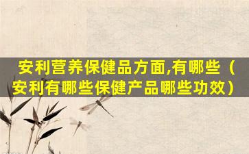 安利(Amway)是一家全球知名的直销公司,提供多种营养保健品。以下是一些安利在营养保健品方面的产品: