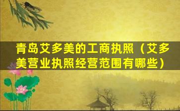 截至我的知识更新日期(2023年),我无法提供特定公司的最新工商执照信息,因为这通常是受保护的商业机密,并且需要通过官方渠道查询。如果您需要查询“青岛艾多美”的工商执照信息,您可以通过以下几种方式进行:
