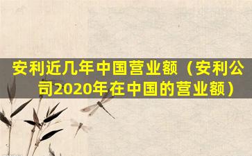 截至我的知识更新日期(2023年),我无法提供安利(Amway)在中国的具体营业额数据,因为这些信息通常由公司自行公布,并且可能不会实时更新。安利是一家全球性的直销公司,其财务数据通常会在公司的年度报告或季度报告中披露。