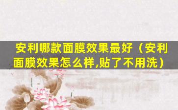 安利(Amway)是一家全球知名的直销公司,其产品线包括营养补充品、个人护理品和家居护理品等。在面膜方面,安利也有自己的产品,但是关于“效果最好最安全”的面膜,这通常取决于个人的肤质、需求以及对产品的个人体验。