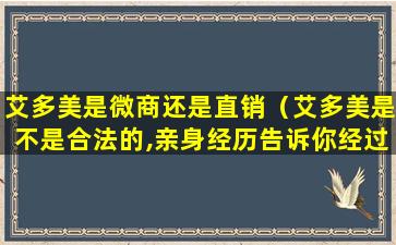 如果您对艾多美或直销行业有进一步的兴趣或疑问,建议直接咨询艾多美公司或查阅相关的官方信息,以获取最准确和最新的信息。同时,了解和参与任何直销活动前,应确保其合法性,并仔细阅读相关的合同条款和条件。