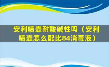如果您需要了解特定型号的安利喷壶是否耐酸碱性,建议直接咨询安利的官方客服或查看产品的详细规格说明。