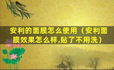安利(Amway)是一个国际知名的直销公司,提供多种健康、美容和个人护理产品。如果您手头有安利的面膜产品,以下是一般的使用步骤: