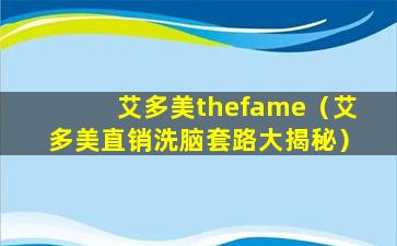 “艾多美thefame”可能是指一个品牌、产品或者服务,但由于信息不足,无法提供具体的解释。如果您能提供更多的上下文或者详细信息,我会尽力帮助您了解更多关于“艾多美thefame”的信息。如果您有其他问题或需要帮助,请随时告诉我。