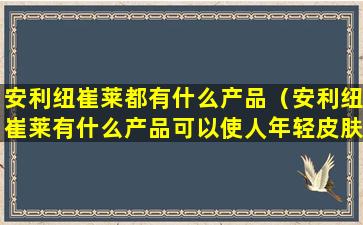 10. 美容和护肤产品:虽然不是营养补充品,但安利纽崔莱也提供一些与营养相关的美容产品,如含有抗氧化成分的护肤品。