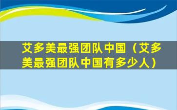 截至我的知识更新日期(2023年),关于“艾多美中国最大的团队”的具体信息并不明确,因为这可能涉及到一个特定的直销或多层次营销(MLM)公司,而这类公司的团队大小和结构可能会随时间而变化。
