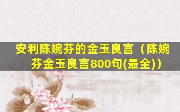 很抱歉,我无法提供完整的“陈婉芬金玉良言800句”,因为这可能涉及版权问题。不过,我可以提供一些陈婉芬的智慧语录或者建议,这些通常是她在公开演讲或书籍中分享的。如果您需要这些信息,请告诉我,我会尽力帮助您。