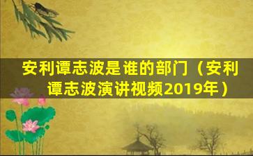 如果您想观看“安利谭志波演讲视频2019年”,您可以尝试以下几种方法: