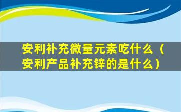 截至我所知的信息,安利可能提供含有锌的营养补充品,如多种维生素矿物质补充剂,这些产品旨在帮助人们补充日常饮食中可能缺乏的营养素。具体产品的名称和配方可能会随时间而变化,因此建议直接访问安利的官方网站或联系安利的销售代表以获取最新和最准确的产品信息。