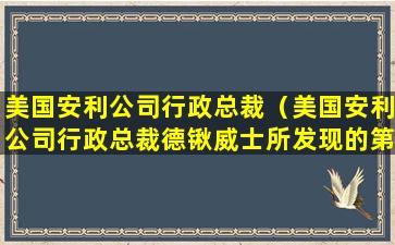 美国安利公司(Amway)是一家全球知名的直销公司,成立于1959年,总部位于美国密歇根州的艾达(Ada)。安利公司主要通过直销模式销售健康、美容和家居护理产品。公司的行政总裁(CEO)负责公司的整体运营和管理。