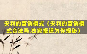 安利(Amway)是一家全球性的直销公司,其营销模式主要是通过独立分销商网络销售产品。在中国,安利的营销模式遵循中国的法律法规,并进行了相应的调整以适应中国市场。