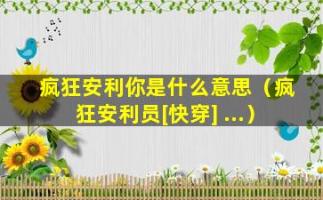 "疯狂安利"是网络流行语,源自于中文网络社区。"安利"一词在这里是动词,源自英文单词"recommend"的谐音,意为推荐或介绍。"疯狂安利"则意味着非常热情、积极地推荐某样东西,通常是指某人非常喜欢某个产品、作品、服务或观点,并且不遗余力地向他人推荐,希望他人也能喜欢或接受。