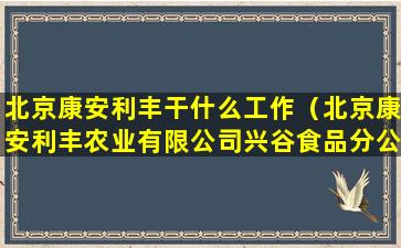 北京康安利丰可能是一家公司或机构,但由于信息不足,无法确定其具体业务范围或工作内容。如果您想了解北京康安利丰的工作内容,建议直接联系该公司或访问其官方网站以获取最准确的信息。如果北京康安利丰是一家提供特定服务或产品的公司,它可能涉及的工作内容可能包括但不限于销售、市场营销、客户服务、产品开发、技术支持等。