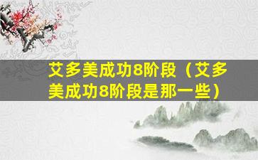 如果你正在寻找关于"艾多美成功8阶段"的具体信息,我建议查找相关的书籍、课程资料或者直接联系提出这个概念的组织或个人以获取更详细的信息。由于这个术语可能是一个特定领域的专有名词,可能需要更具体的上下文来提供准确的解释。