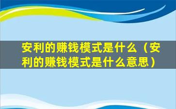 安利(Amway)是一家全球性的直销公司,其赚钱模式主要基于多层次营销(MLM)或网络营销。以下是安利赚钱模式的基本: