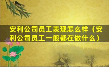 安利(Amway)是一家全球知名的直销公司,成立于1959年,总部位于美国密歇根州。安利主要通过独立分销商销售健康、美容和家居护理产品。关于安利公司员工的表现,由于我无法获取具体的个人数据和评价,因此无法提供具体的员工表现情况。