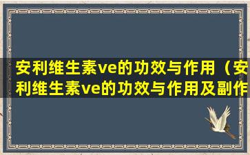 安利(Amway)是一家全球性的直销公司,其产品线包括维生素和矿物质补充剂。维生素E(通常简称为VE)是一种脂溶性维生素,对人体健康有多种益处。以下是维生素E的一些主要功效与作用,以及可能的副作用:
