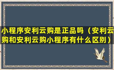 关于“微信小程序安利云购产品”的真实性,以下是一些判断的建议: