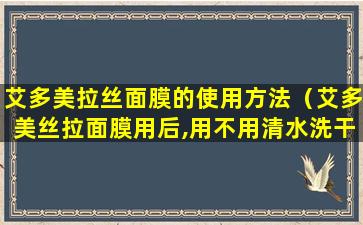 艾多美丝拉面膜(假设这是一种面膜产品)使用后是否需要用清水洗净,通常取决于产品说明。不同的面膜产品有不同的使用方法,有些面膜是免洗的,使用后可以留在皮肤上,让其自然吸收;而有些面膜则需要在一定时间后用清水洗净。