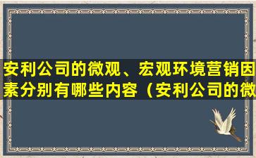 安利公司需要综合考虑这些微观和宏观环境因素,制定相应的营销策略,以适应不断变化的市场环境,保持竞争力和持续增长。