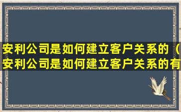 安利公司(Amway)是一家全球性的直销公司,以其多层次营销(MLM)模式而闻名。安利公司建立客户关系的方式主要包括以下几个方面: