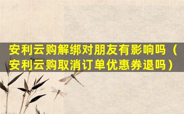 安利云购是安利公司推出的一种在线购物平台,用户可以在该平台上购买安利的产品。如果你在安利云购上绑定了朋友的信息,比如作为推荐人或者团队成员,解绑这个操作可能会对你的朋友产生一定的影响,具体影响取决于你们之间的业务关系和安利的具体政策。