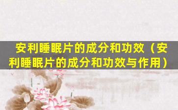 安利(Amway)是一家全球知名的直销公司,其产品线涵盖了营养补充品、个人护理品、家居用品等多个领域。安利睡眠片通常指的是其旗下的营养补充品,旨在帮助改善睡眠质量。
