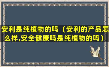 安利(Amway)是一家全球性的直销公司,其产品线涵盖了营养补充品、个人护理品、家居清洁用品等多个领域。安利的产品中确实包含了一些以植物为基础的成分,例如在营养补充品中可能会使用植物提取物,在个人护理产品中可能会使用植物油和植物提取物等。